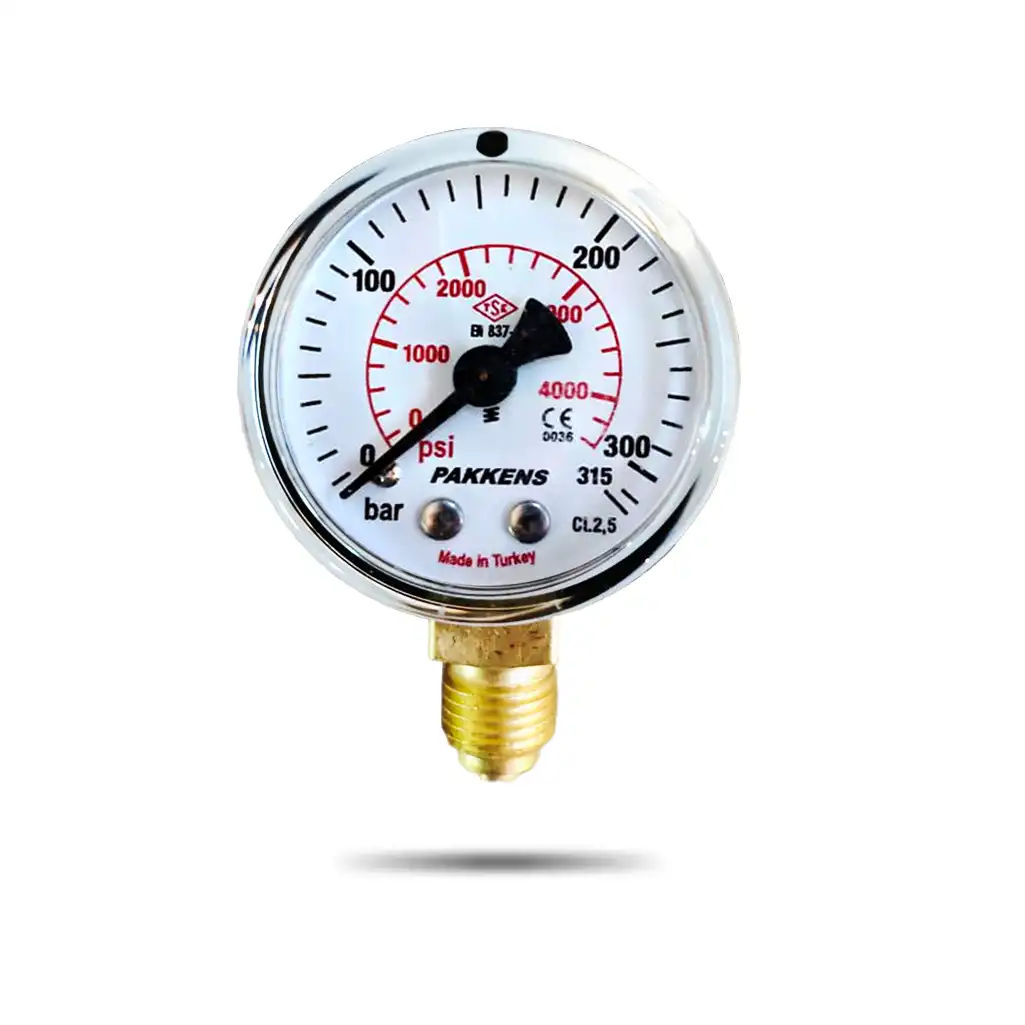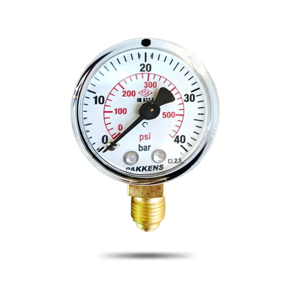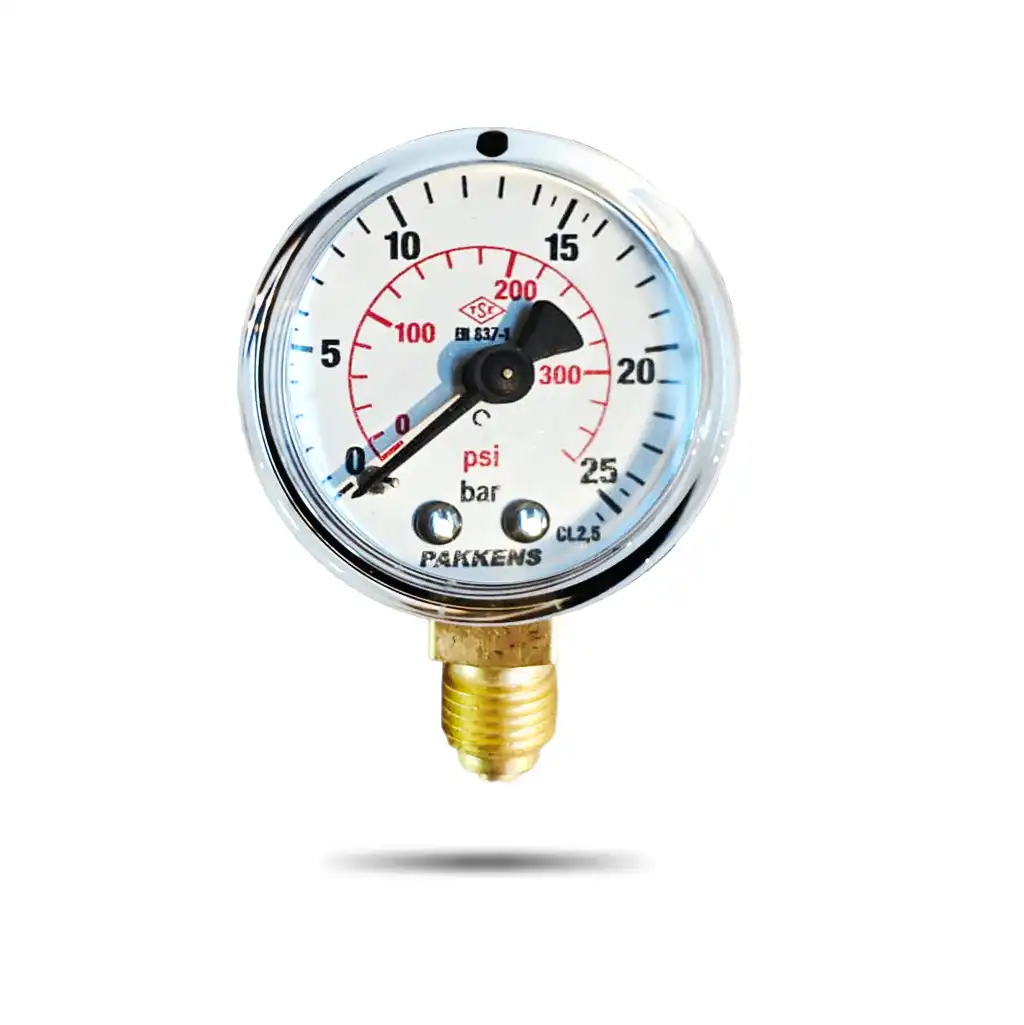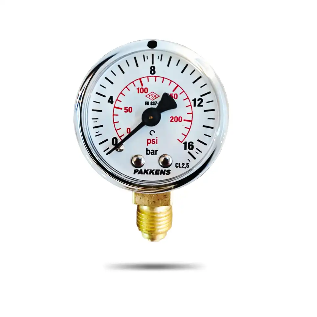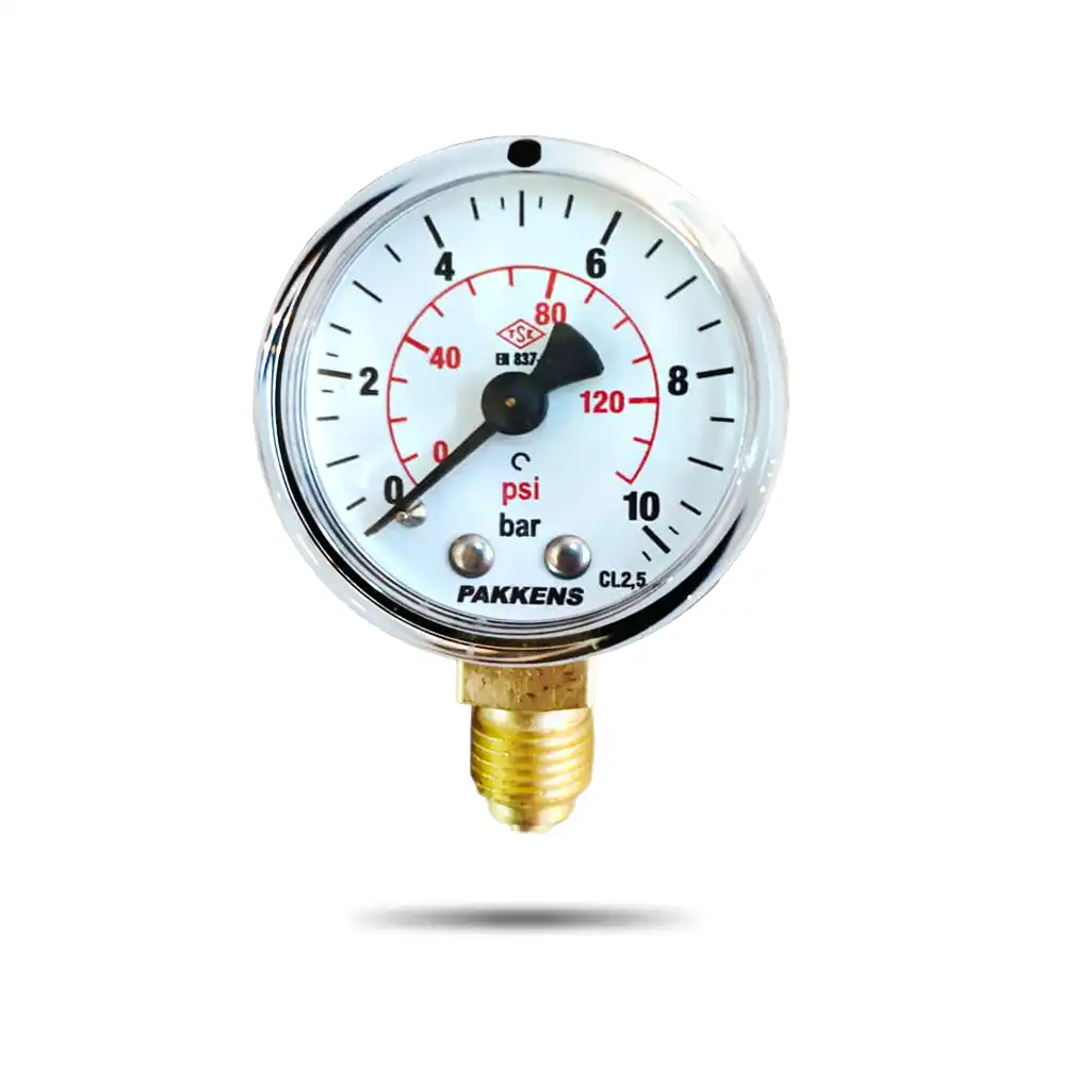 PAKKENS მანომეტრი Ø50 / 0-10bar / CL.2,5 , 1/4″, ქვედა მიერთებით